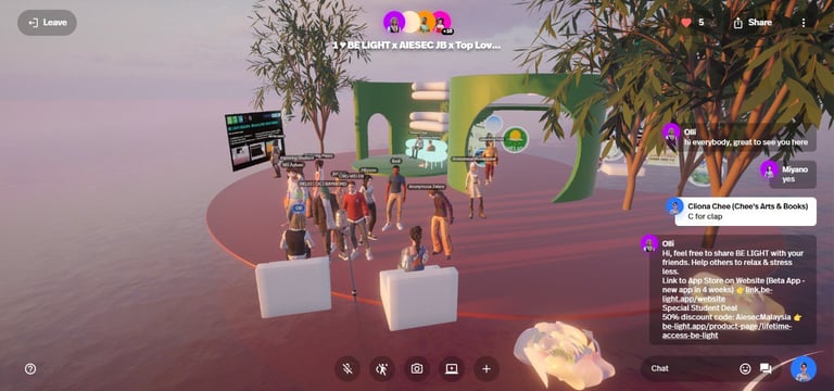 AIESEC JB, Malaysia is a non-profit org with Malaysian Youth Volunteer (MYV) organising HELIO 3.0 as the Mental Health Survival Kit. The Organising Committees are led by Kek Da Quan, Chum Chee Kin, Ng Yie Ling, Raymond Fong Min Hong, Chen Kar Wai and more. Cliona Chee of Top Love sets up immersive VR stimulating environments for healing sessions that alter EEG brain signals. T&C of BE LIGHT Applies.